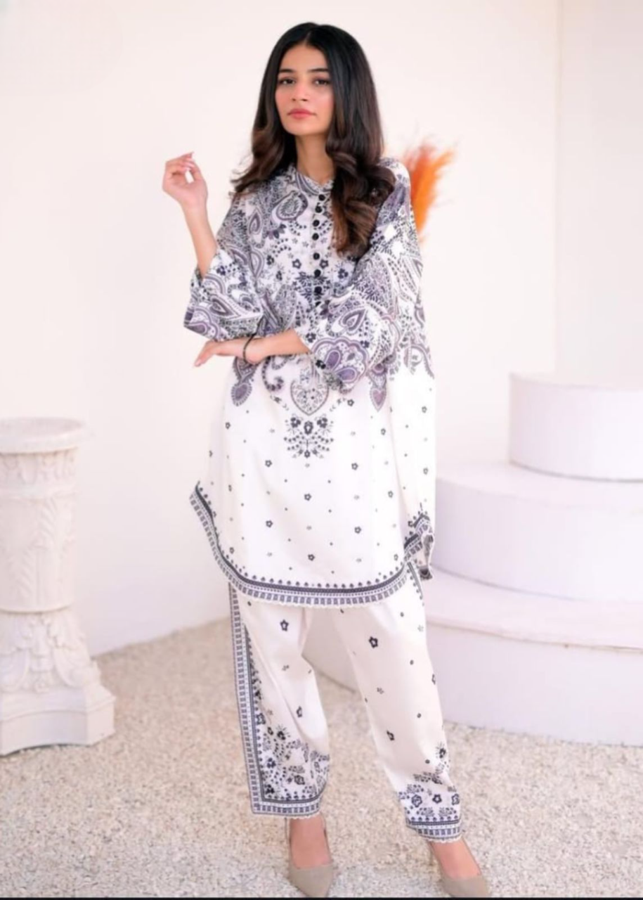Front And Back Digital Printed Frock With Printed Flapper 2Pcs