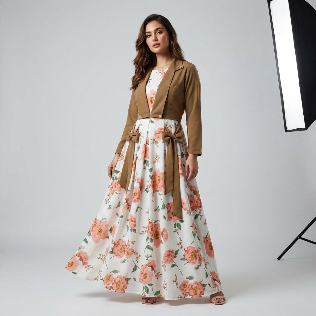 Add grace and elegance to your winter wardrobe with this beautiful Digital Printed Sleeveless Maxi paired with a stylish Koti. The soft and flowy China Silk fabric of the maxi gives a luxurious feel, while the cotton koti adds a trendy ethnic touch—perfect for festivals, weddings, and special occasions.